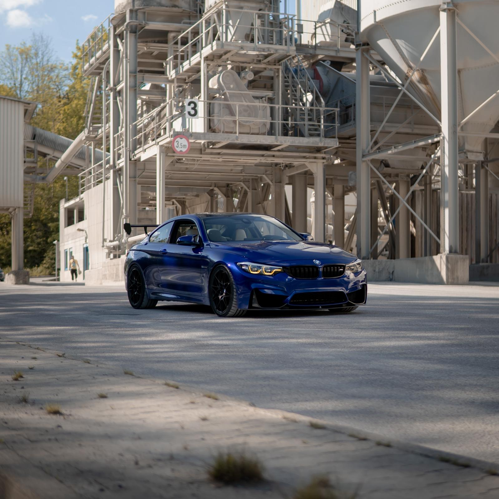 BMW M4 F82 mit CFK-Seitenteilen "CUP" in der vorgebohrten Variante ohne Klarlack. Montiert an einem Heckflügel von Burkhardt Engineering.